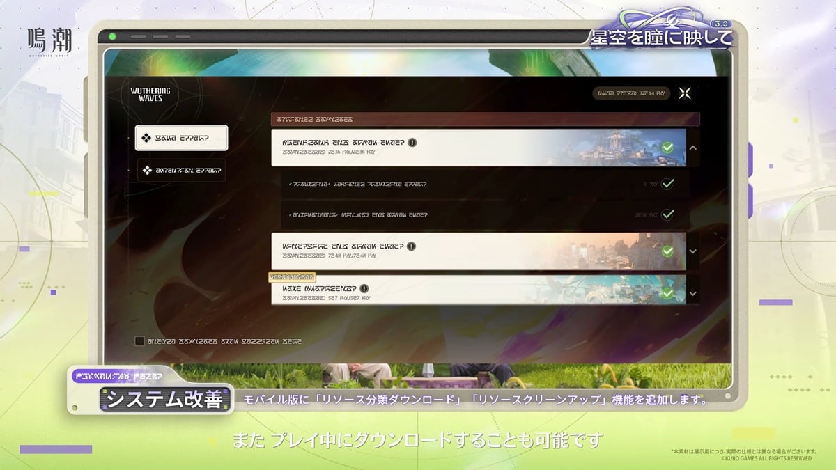 『鳴潮』スマホ版に「ストレージ容量節約」機能実装へ。必要なデータだけ選んだり不要なデータを消したりで、グッと容量減りそう