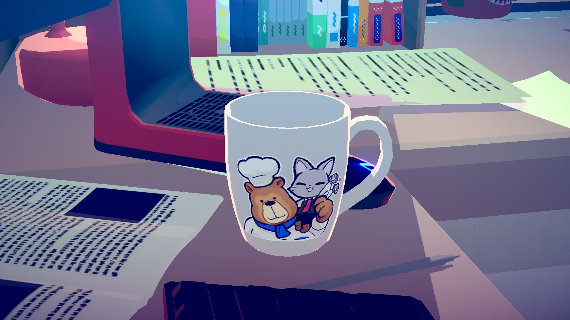 そして今回のコラボでは、『Chill with You : Lo-Fi Story』側に『くまのレストラン』の主題歌「Pieces of Memory」が作業用トラックのひとつとして実装される。そのほかにも、作品に関連したコラボシナリオや特別な会話、配置できるマグカップが導入されるという。またゲーム本体のアップデートも行われ、プレイ時間と引き換えに、小物や効果音、背景などを入手できるシステムも追加された。