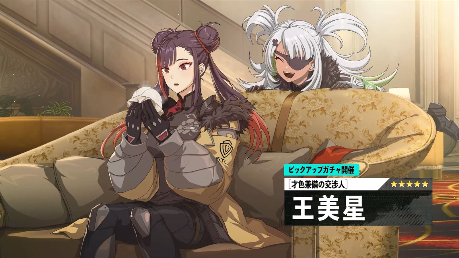 そして本アップデートでは、新たなオリジナルキャラクター王美星(ワン・メイシン)が追加される。CLOZERに所属する美星は、次元怪獣の対策に政治的摩擦が起きないように世界各国で活躍する交渉人だ。世界各国の政財界と繋がりを持ち、「電話一本で解決している」と豪語するほどのずばぬけた交渉力を持つ。美星は現場での戦闘にも参加し、軽やかな身のこなしでアサルトライフル「AR-グニジルフ」や、“衛星爆撃”などを用いて怪獣を撃破する。王美星と「AR-グニジルフ」はそれぞれ★5のキャラクター、武器として実装される。