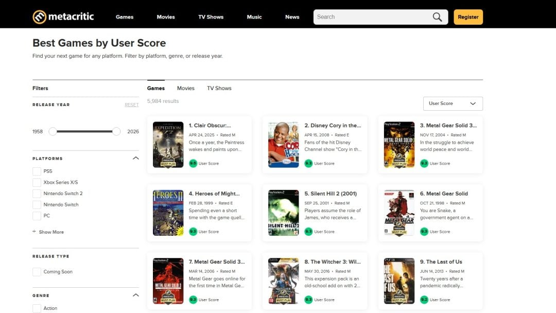 なお、9.2点・9.1点の作品には『ゼルダの伝説 ムジュラの仮面』や『The Last of Us』、『バイオハザード4』といった歴史的な名作が多く並んでいる。これらの作品をしのぎ、突如として『Disney Cory in the House』はユーザースコアだけ名作ゲームと肩を並べているわけだ。