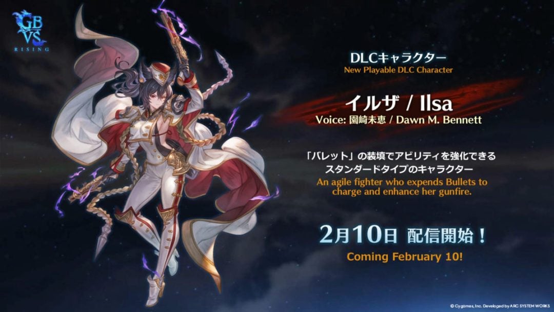 Cygamesは1月18日、『グランブルーファンタジーヴァーサス -ライジング-(GBVSR)』の新DLCキャラクター・イルザを2月10日に配信すると発表した。