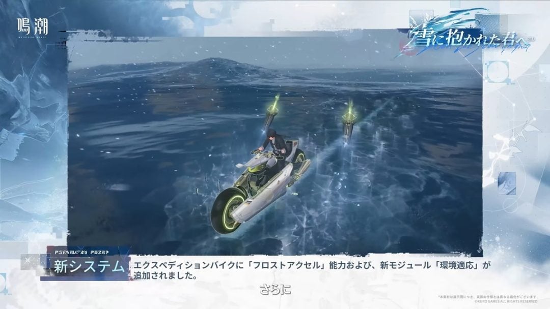 また、ロイ氷原は雪に覆われたエリアであり、その探索を助ける探索モジュール「エクスペディションバイク」にも新たな機能が追加。水面を凍らせて水上をバイク走行する機能「フロストアクセル」や、バイクの性能を向上させる新モジュールなどが加わるという。Ver.3.1ではロイ氷原に新たなフィールドアクティビティが追加されるため、その探索に役立つことだろう。