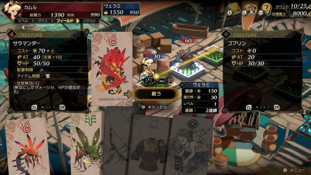 『カルドセプト ビギンズ』は、ソロプレイおよび最大4人対戦に対応。オンライン対戦のほか、「Nintendo Switch 2 Edition」ではおすそわけ通信でのマルチプレイにも対応する。プレイヤーはカードを自在に操るセプターとなり、サイコロを振ってすごろくのマスを進み、止まったマスでカードを使用しクリーチャーを召喚して、自分の領地にしていく。そのマスに止まった敵からは通行料を獲得可能。一方でバトルを挑むこともでき、相手を倒せばその領地を手にできる。そうして目標の資産を達成すれば勝利だ。