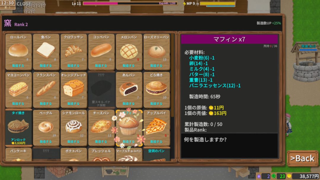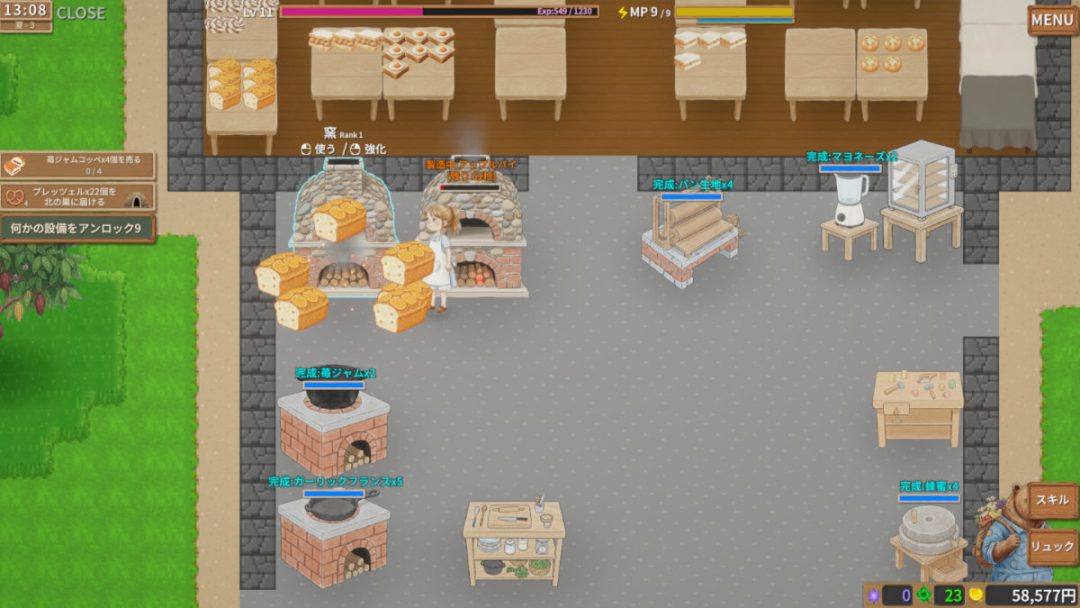 要素としては、本作ではパンやケーキ、お菓子や料理が作成できるとのこと。画像では窯Rank2という表示とともに食パン、クロワッサン、メロンパン、あんパン、どら焼き、マフィン、アップルパイなど、多数のパンなどが確認できる。またスキルツリーが用意されており、スキルを習得して素材入手の効率化や、施設のランクアップなどがおこなえるようだ。少しずつお店を効率化しながら、可愛らしいパン屋さんを運営していくのだろう。