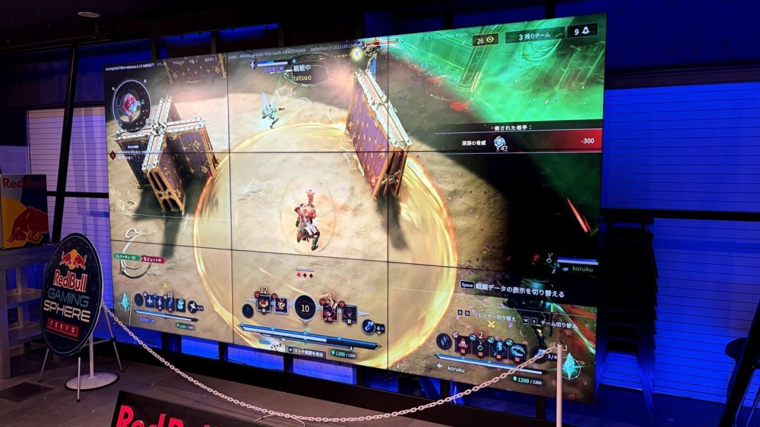 序盤こそ緊張した面持ちだったプレイヤーたちも、試合が進むにつれて徐々にヒートアップ。「ダーラ装備あるよ」「デストロイヤー連れてきた」など具体的な指示が飛び交い、チーム内で状況を共有しながら動く様子が見られた。戦闘中には歓声や悔しげな声も上がったが、敗北したチームもすぐに席を立つことはなく、そのまま観戦を続けていたのが印象的。本作は見下ろし型視点を採用しており、キャラクターの位置取りやスキルの使いどころが俯瞰で把握しやすい。観戦中も会話が自然と生まれ、次の戦略を確認し合う姿が多く見られた。
