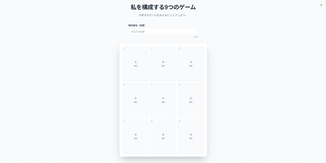 今回話題となっているのは、音楽やゲームの話題を中心に扱う個人サイトを運営するびるすぴ氏が2月19日に公開した「My 9 Games」というウェブサイトだ。本サイトでは、自らに影響を与えた9つのゲームを1枚の画像にまとめ、一覧形式で紹介できる。