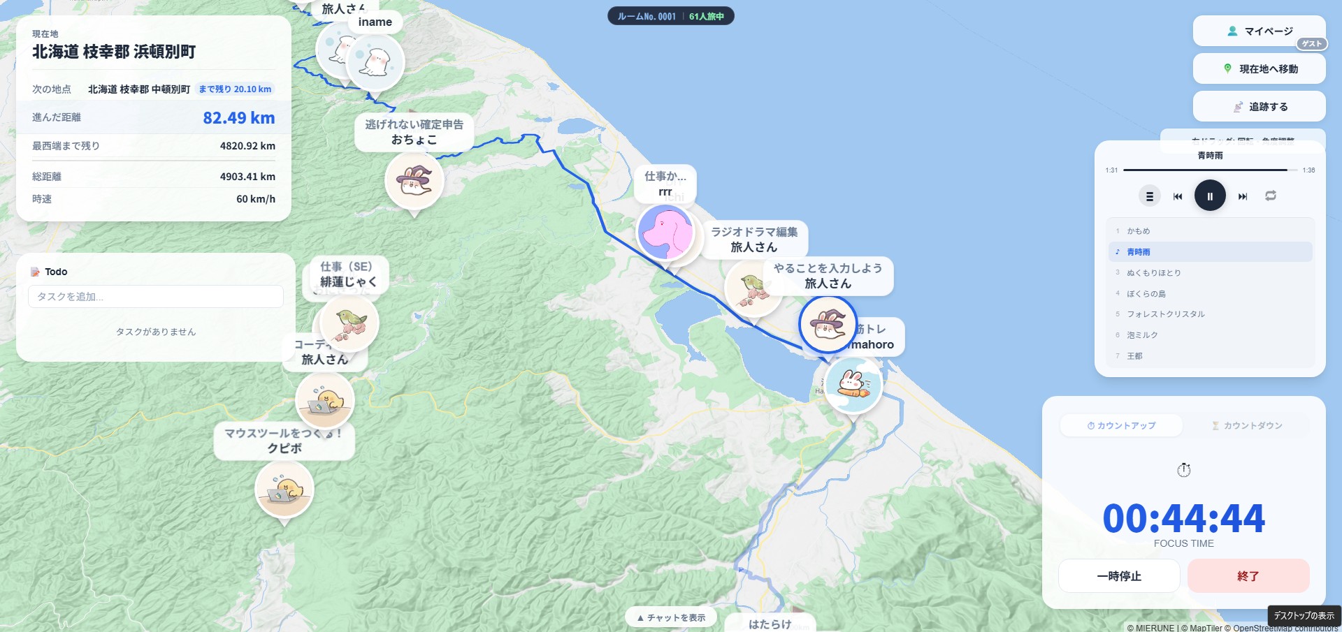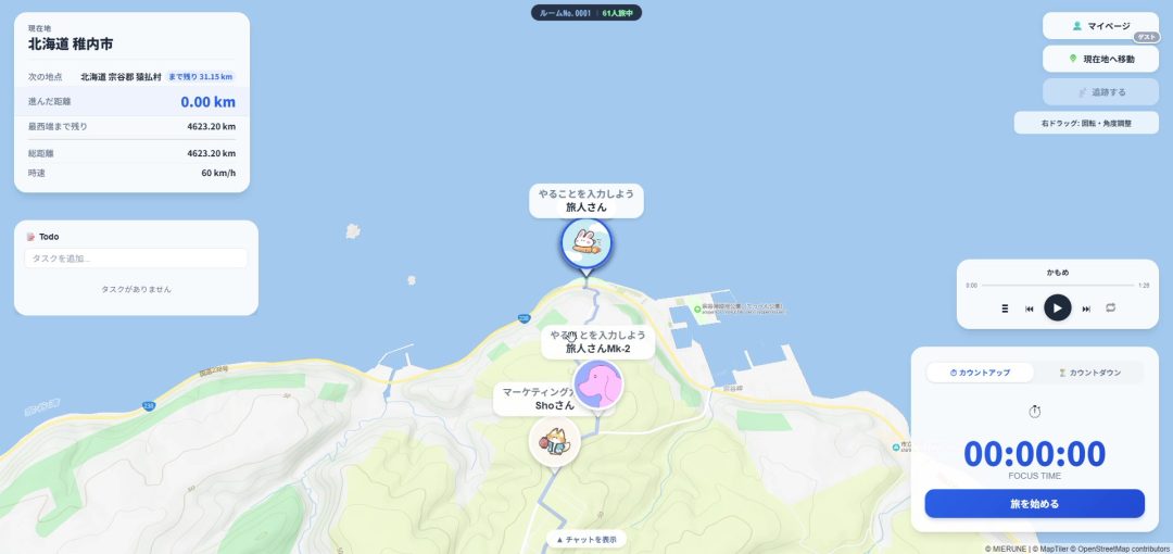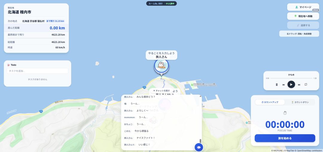 “みんなで作業旅”ツール『旅するタイマー』無料公開されブームの兆し。作業時間で北海道から沖縄まで日本縦断、ゆるく繋がる交流作業