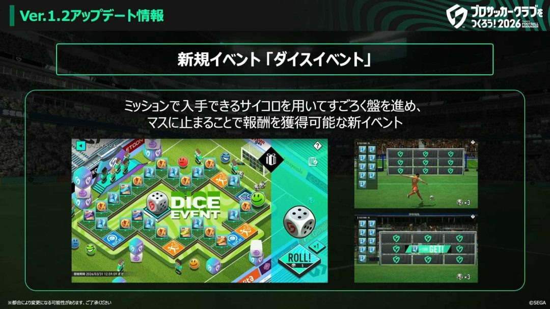 基本プレイ無料『サカつく2026』の公式番組「サカつくTV#6」にて、Ver.1.2の詳細などが明かされた。