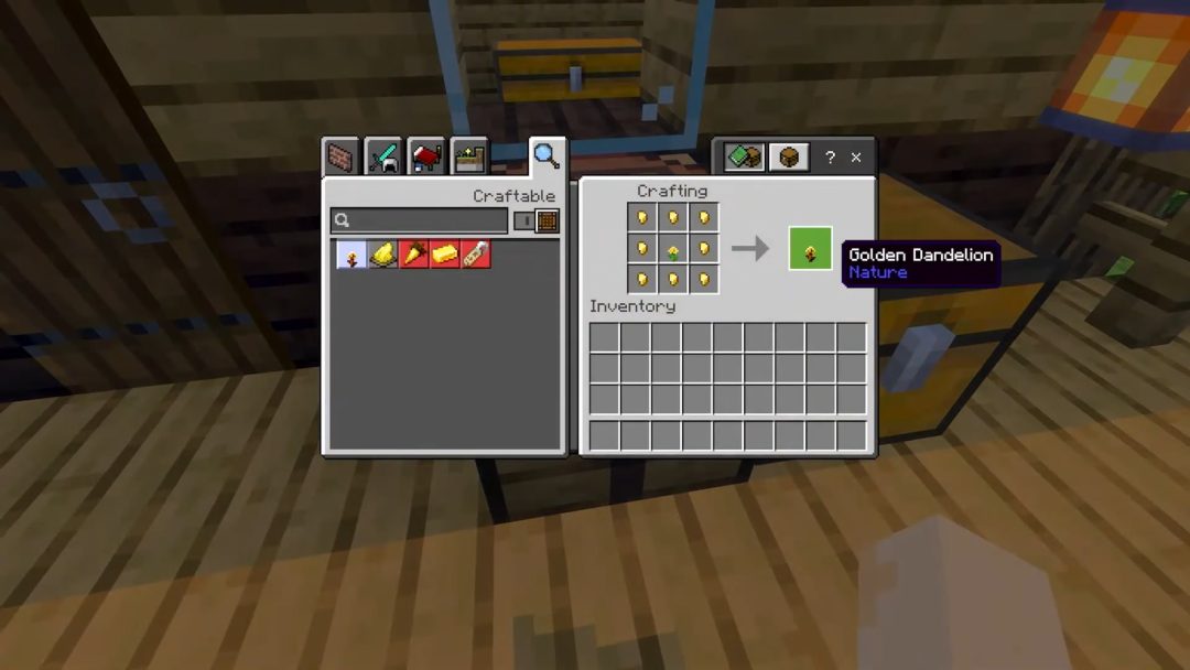 なお、赤ちゃんモブに新アイテム「金のタンポポ」を与えることにより、成長を止めることができる。成長前のかわいらしい見た目を維持したい場合に使うのがよいだろう。金のタンポポは、金塊8つとタンポポを作業台でクラフトすることが可能だ。
