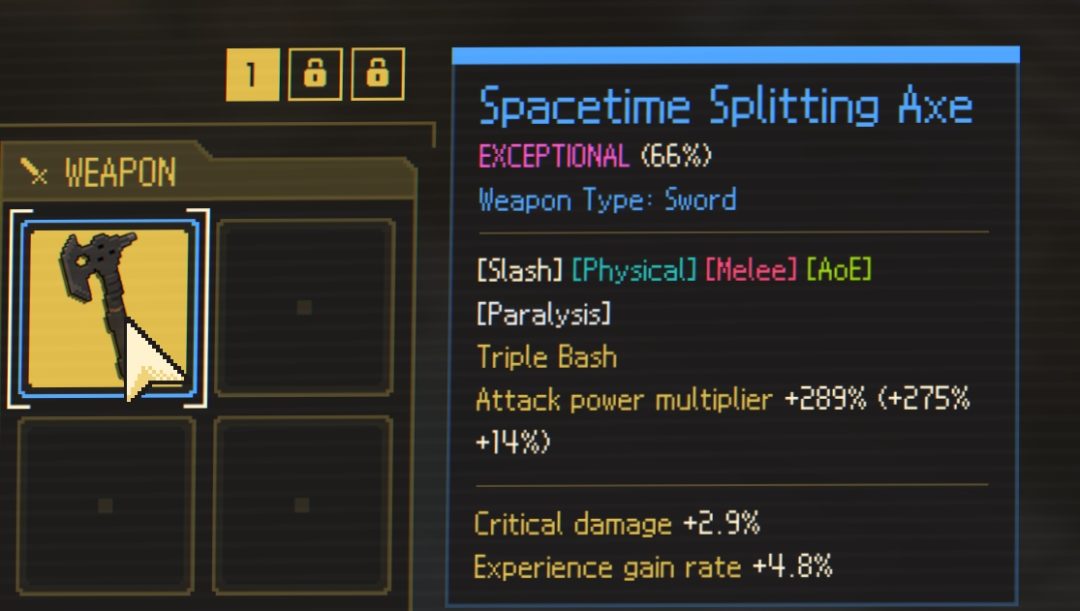 マップの先へ進むことでさまざまな要素がアンロックされていく。獲得したリソースで武器やデバイスを装備するスロットを増やしたり、制限時間を増やしたりといった永続強化要素も豊富に用意されている。また、ラン開始時に持ち込める装備にはレア度やランダム特性が設定されており、高レア度の装備品を狙うというハクスラ要素も存在。何度も過去に挑んで育成をおこない、世界の運命を変えるのだ。