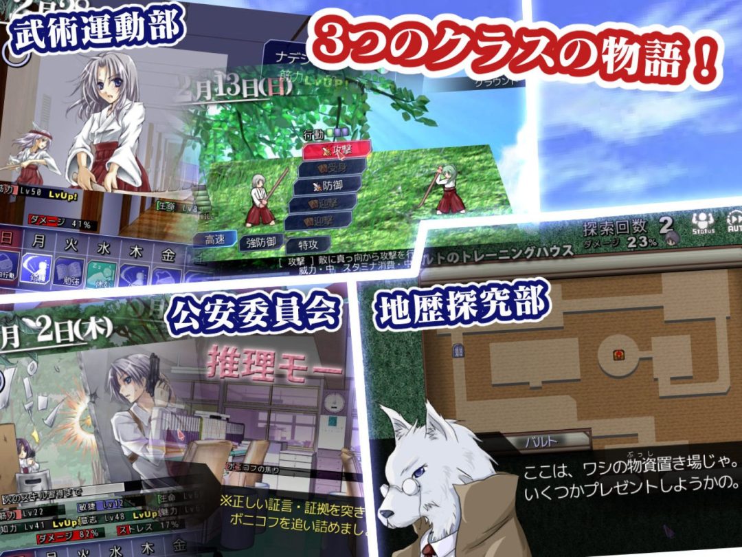 システム面では、本作では1週間のスケジュールを設定して、キャラクターを強化。自由行動時には買い物や誰かとの交流、捜査など、街を自由に探索できる。また戦闘では、ターン制のバトルが展開される。ターンごとに複数回の行動が可能。ガード回数を削ると与ダメージが大きくなっていく仕組みも導入されている。そのほか本作では、ユーザー制作のデータが多数存在。ユーザーを選んで取り込むと、トーテムやイベント、住居、クラスなどの追加も可能となっていた。