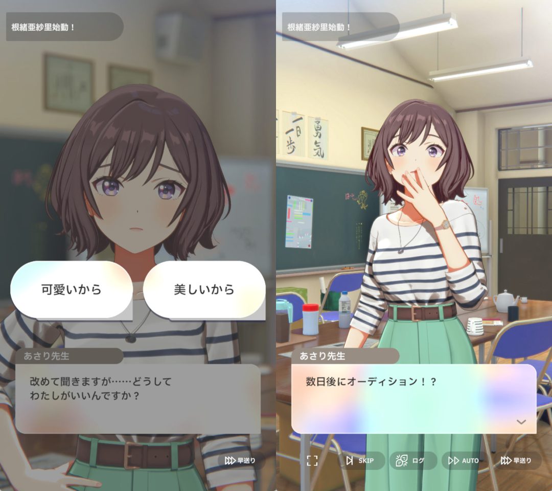 そんな本作にて、本日4月1日よりスペシャルイベント「4月1日のドリームステージ」が開始された。同イベントでプロデューサーは、プロデューサーの担任の先生である根緒亜紗里(ねおあさり)先生をプロデュースしようとする。ついにあさり先生がプロデュースできることになったためか、行動力に溢れるプロデューサーは、数日後に開催されるオーディションに向けて活動を開始。あさり先生とプロデューサーがアイドルを目指す日々が繰り広げられるようだ。本作では、普段は学園に通うアイドルたちが主役となっているが、今回はあさり先生をフィーチャーしたイベントとなるわけだ。