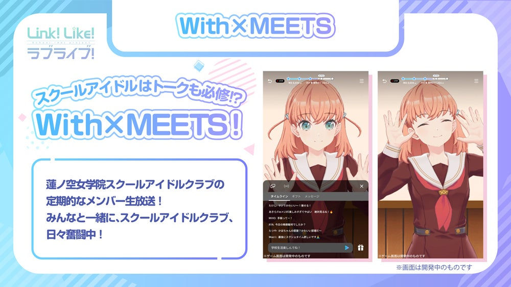 スマートフォン向けアプリ『Link!Like!ラブライブ!』がメディアミックスプロジェクト内のメインとなっており、楽曲の流れにあわせてライブを盛り上げるミュージカルカードゲームやリズムゲームモードなど、ゲーム内にて多彩なコンテンツが展開されている。フルボイス/フル3Dで描かれる煌めく青春のストーリー「活動記録」は毎月更新。リアルタイム「スクールカレンダー」連動プロジェクトと謳われており、スクールアイドルたちによる定期生配信「With×MEETS」、バーチャル音楽ライブ「Fes×LIVE」など、現実の時間と連動して多数の生のコンテンツも展開されていた。