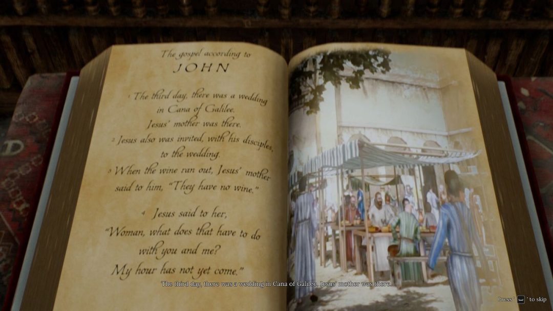 本作のシナリオは、新約聖書に記された出来事をもとに構成されている。たとえば、イエスが山で祈る場面や、処刑へ向かう途上で自ら十字架を背負う場面などが描かれており、福音書に見られる記述を踏まえた出来事を体験できる。また作中には、新約聖書において物語の中心となるエルサレムや、宣教の拠点とされるガリラヤといった聖地が登場。荒野や山岳地帯などを含む各地のロケーションが再現されており、当時の地理的背景をなぞるように各地を巡りながら物語は進行していく。