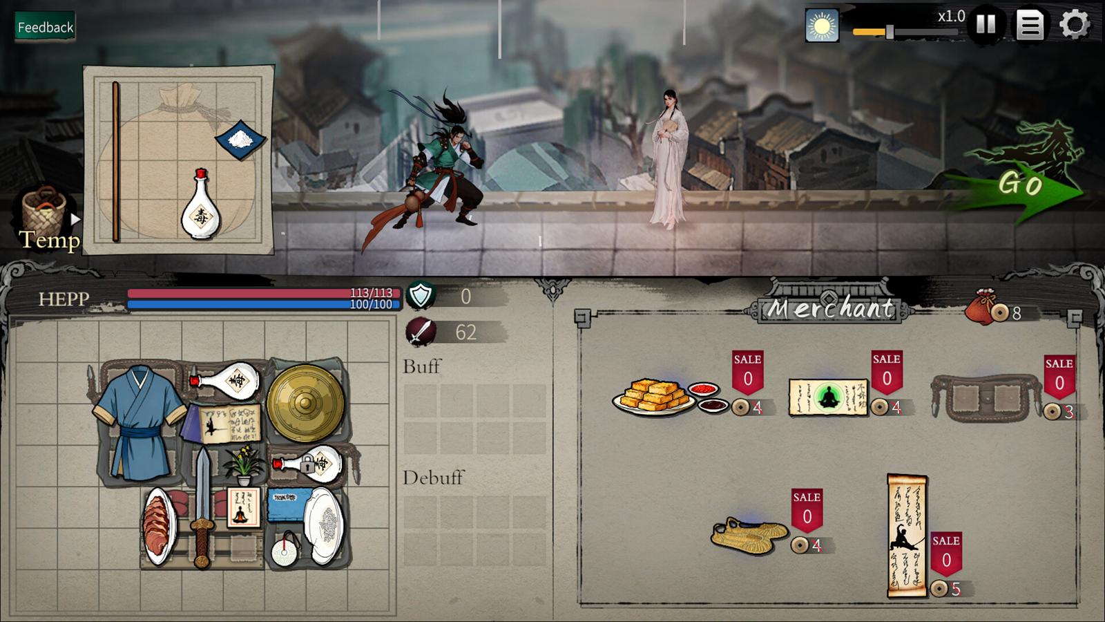 ストアページによると、本作は2024年に発売された人気荷物整理ゲーム『バックパック・バトル』に武侠の要素を組み込んだ作品であるという。中国武術を題材にしたさまざまな門派が実装されており、現時点では少林派、武当派、華山派、五毒派、血刀門、丐幇、唐門、六扇門、逍遥派といったクラスがある。選択した門派によって初期バッグや初期アイテム、スタート地点が異なり、道中で手に入るアイテムやイベントにも違いが生まれる。