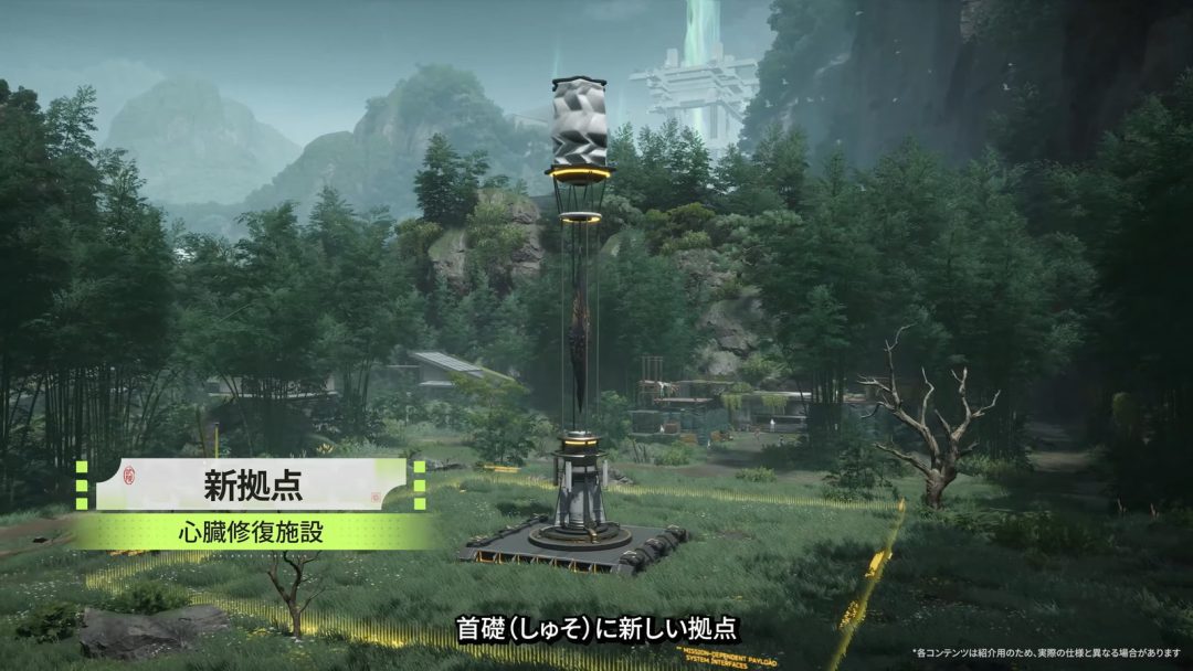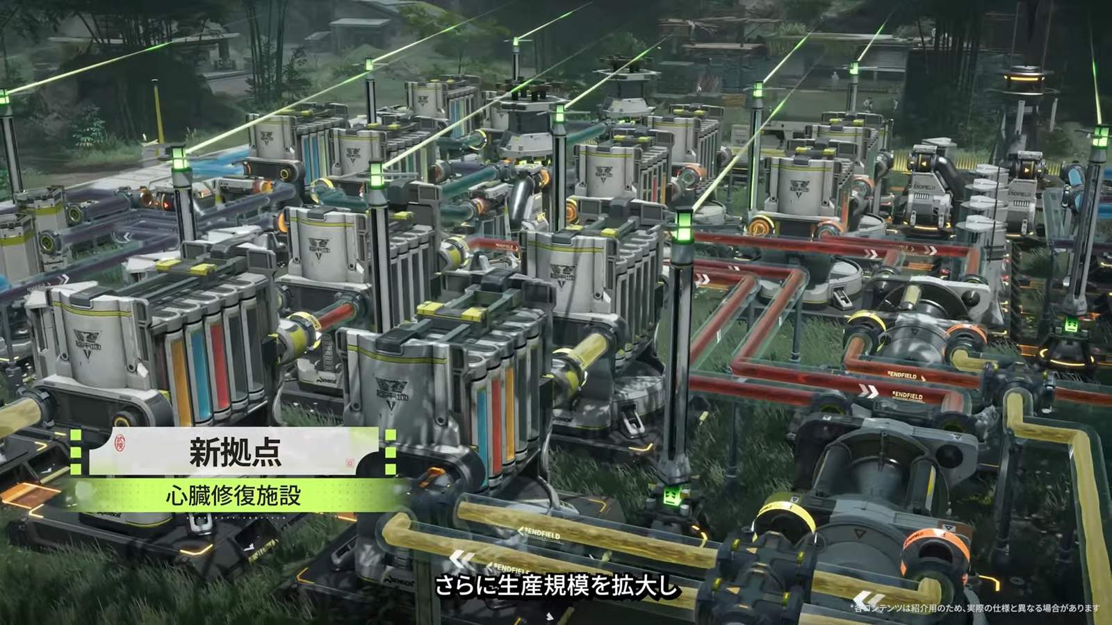 今回、そんな集成工業システムへ向けた新要素が発表された。まず、新エリアのひとつ「首礎」に新たな拠点として「心臓修復施設」が追加されることとなった。ひとつ前のバージョン「潮起ち、故淵離る」では拠点の追加がされなかったため、長らく武陵で地域取引券を獲得できる拠点は景玉谷の「天王原建設支援拠点」1つだけという状況が続いていた。新たな拠点の追加により地域取引券の入手速度の増加が見込めるほか、各種生産施設を設置できるスペースも確保できることになる。
