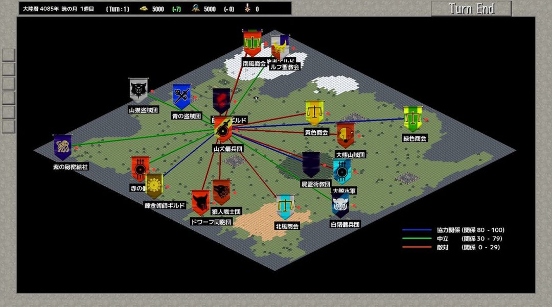 ただし、抗争を起こせば都市は荒廃し、生産施設も損壊するなど勝敗に関わらず自勢力にも被害が及ぶだろう。ゆえに本作では直接的な衝突を避ける選択肢も用意されている。たとえばライバルと「販売協定」を結べば、衝突を避けつつ一定の利益を確保できる。また、都市の市議会議員に働きかけることで、ライバルの商品を“合法的”に市場から排除することが可能だ。商品だけではなく、腕力や内政などあらゆる手段を用いてギルドを拡張していくのだ。