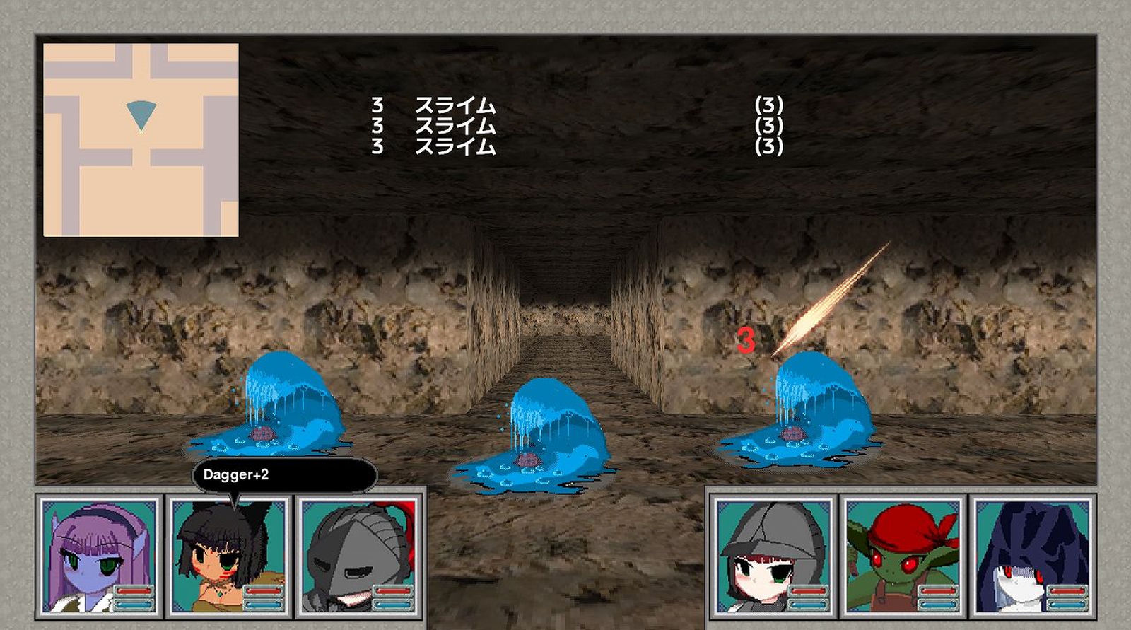 資金を蓄えたのち、本作は3DダンジョンRPGパートへと移行する。プレイヤーは資金を投じて冒険者を雇用し、危険なモンスターがはびこるダンジョンへ挑むことになる。ダンジョン内での戦闘は半オートバトル形式でおこなわれ、パーティは事前に設定された攻撃パターン通りに行動するが、強敵との戦闘時などには割り込み指示を出すことも可能だ。危険と隣り合わせの探索ではあるが、内部では特殊な力を持ったアーティファクトが入手可能。アーティファクトはギルドメンバーを強化するだけでなく、生産施設の拡張や新規建設にも寄与する。