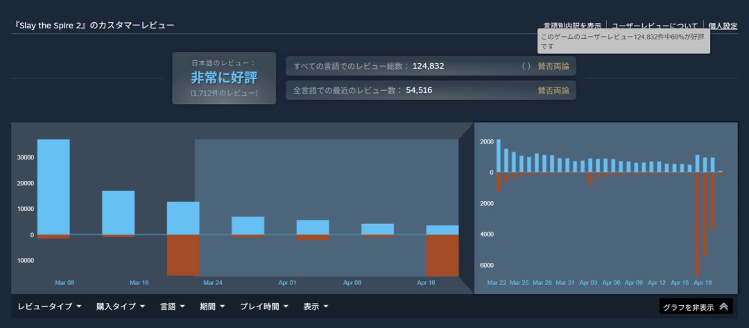 デベロッパーのMega Critは4月17日、『Slay the Spire 2』メインブランチ向けのアップデートv0.103.2を配信した。これまでベータブランチ向けに配信されてきた調整内容を含んだアップデートとなったが、配信後に本作のユーザーレビューは「賛否両論」ステータスとなっている。