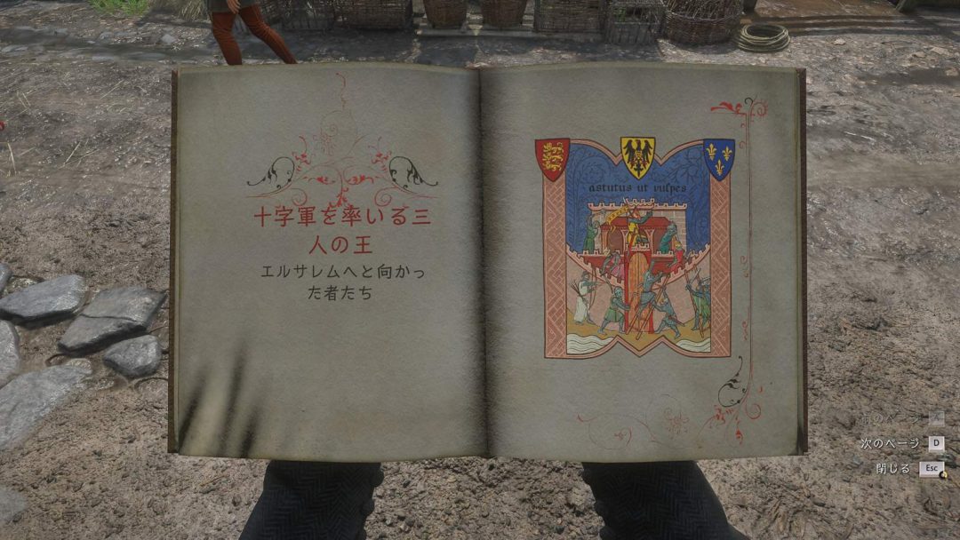 一方、『KCD2』向けにも『CK3』とのコラボレーションを記念したミニアップデートが配信。ゲーム内の書物として新たに「三人の十字軍王(Three Crusader Kings)」が追加されている。同本の内容は、第三次十字軍を率いた三人の君主たちを解説するものだ。『CK3』のゲームタイトルにちなみつつ、ゲーム内の世界観に馴染んだ真面目な歴史書物となっている。