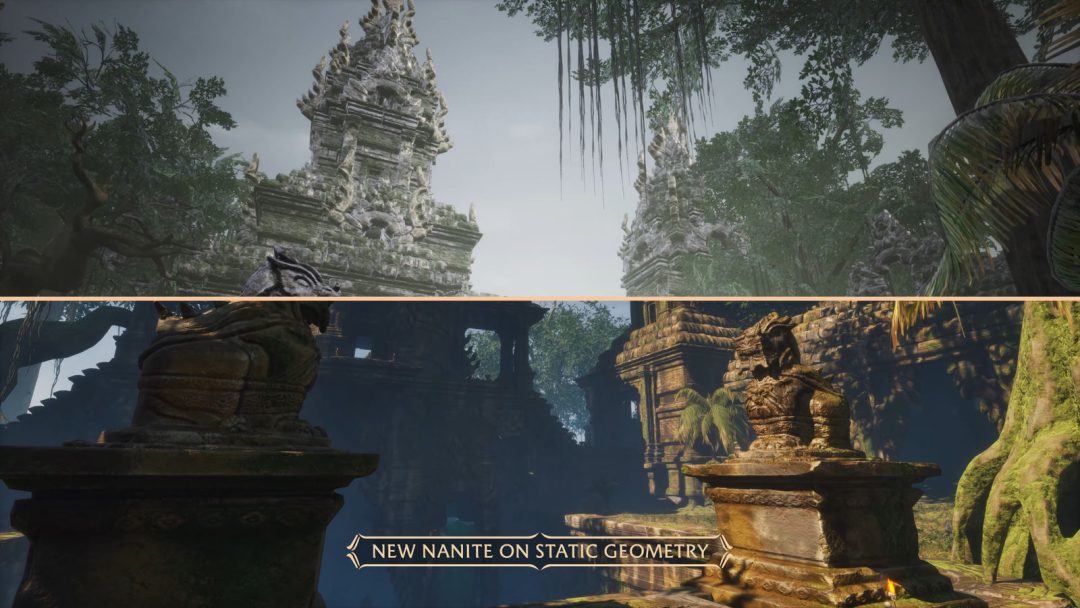 ゲーム全体がUnreal Engine 5で再構築され、グラフィックは劇的に向上。またパフォーマンスが強化され、多くのPC環境において、低からウルトラまでの幅広い設定で60fps以上の滑らかなゲームプレイを目指しているという。ちなみにクライアントの容量はこれまで120GBだったところ、アップグレード後は40GBへと激減。グラフィックは進化しつつ、逆に容量は3分の1になっているわけだ。