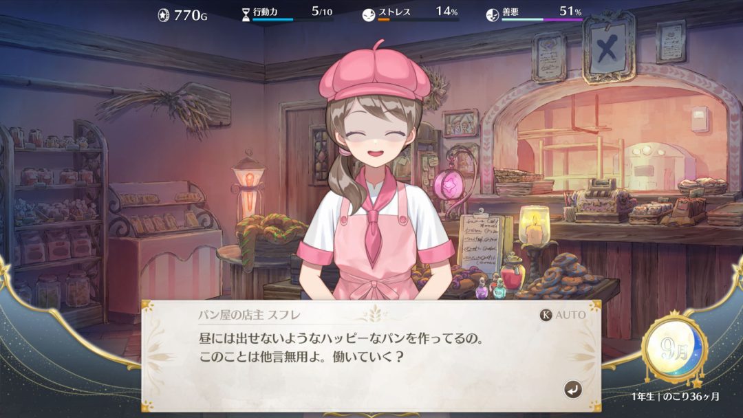 本作には、30名以上のキャラクターも登場する。盗みを繰り返した結果、街中の店で出禁になっているクロワ。凄腕の暗殺者だという影のある青年ハシス。パネテリア王国を統治する女王のコロネリアなどが存在。娘はキャラクターたちとの交流が可能となっており、デートイベントなども用意されている。また本作では夜になると、昼とは違った商品を扱う危ない服屋や闇の武器屋などが営業している。脱法パン屋では、昼には出せないという米粉を用いたハッピーなパンが作られており、アルバイトをすると悪ゲージが増加。さらにスキル「盗みの心得」を取得すると、お店での窃盗もできるようになる。