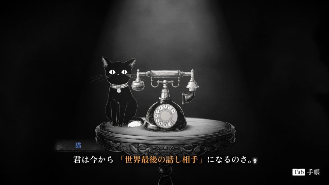 『シュレディンガーズ・コール』は、世界最後の話し相手としてさまよう魂たちの心残りに応える、「絵本を読んでいるかのように、優しさに包まれる感覚のノベルアドベンチャー」だ。本作の舞台は、月の落下によって21ナノ秒後に終わりを迎える世界である。同世界には通話中に月が落ちてきて、途切れてしまった未完了通話が多数存在。自分が死んだのかすら定かでない彼らは、生と死の狭間に誰かに語りたいと電話を待ち続けていた。主人公のメアリは、記憶喪失の少女だ。月が落ちて世界が滅びようとする刹那、見知らぬ部屋で目を冷ましたメアリは、謎の猫ハムレットに導かれて世界最後の話し相手となる。10億分の21ナノ秒後に死んでしまう、世界が終わったことを受け入れられず死にきれない魂たちを電話越しに救う、誰かの心残りとメアリ自身を照らす物語が繰り広げられる。