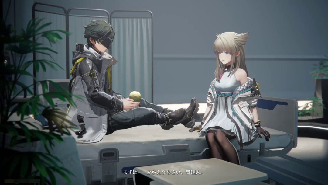 なぜこうした“調査”がおこなわれたのか。その理由は本作のオープニングのとあるシーンにある。本作の主人公にしてプレイヤーの分身である管理人は、長い眠りから目覚めてタロIIでのさまざまな事件に立ち向かうことになる。眠りから目覚めたばかりの管理人は本調子とはほど遠く、そんな管理人を気づかうように、管理人の右腕となる監察官ペリカがりんごの皮を剥いて差し出してくれるのだ。