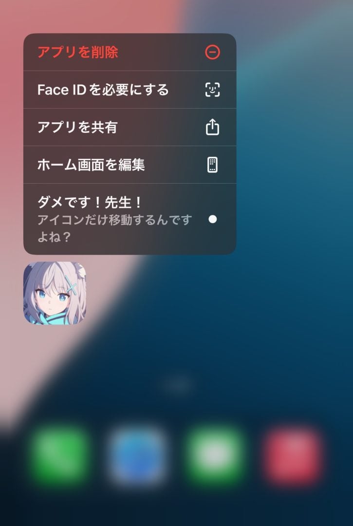 そんな本作のiOS版にて、ひっそり新しいキャラクターからのメッセージが用意されているとして、SNSで現在話題となっている。アプリアイコンを長押しすると、「ダメです!先生!アイコンだけ移動するんですよね?」といったセリフが表示される。iOSやiPadOSではアプリアイコンの長押しによってクイックアクションメニューが開き、削除や移動といった操作ができる。削除される可能性を懸念したセリフになっているのだろう。