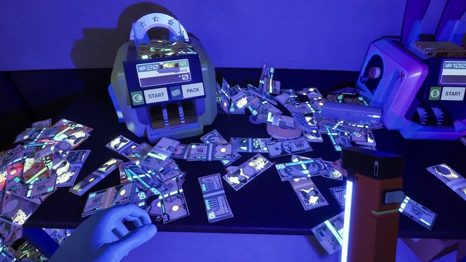 ちなみにストアページの記載によれば、プレイヤーが仕事をしている部屋には何か秘密が隠されているようだ。ストアページでは、紙幣の見えない汚れを検出するツール「UVランプ」で隠された矢印を見つけているところが紹介されている。ほかにも特定の時間帯にしか発見できないものなど、隠された要素は複数あるとのこと。資金洗浄のかたわら、そうした秘密を探してみるのもいいだろう。