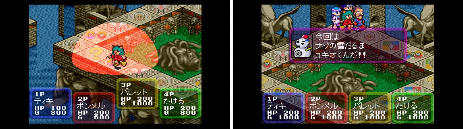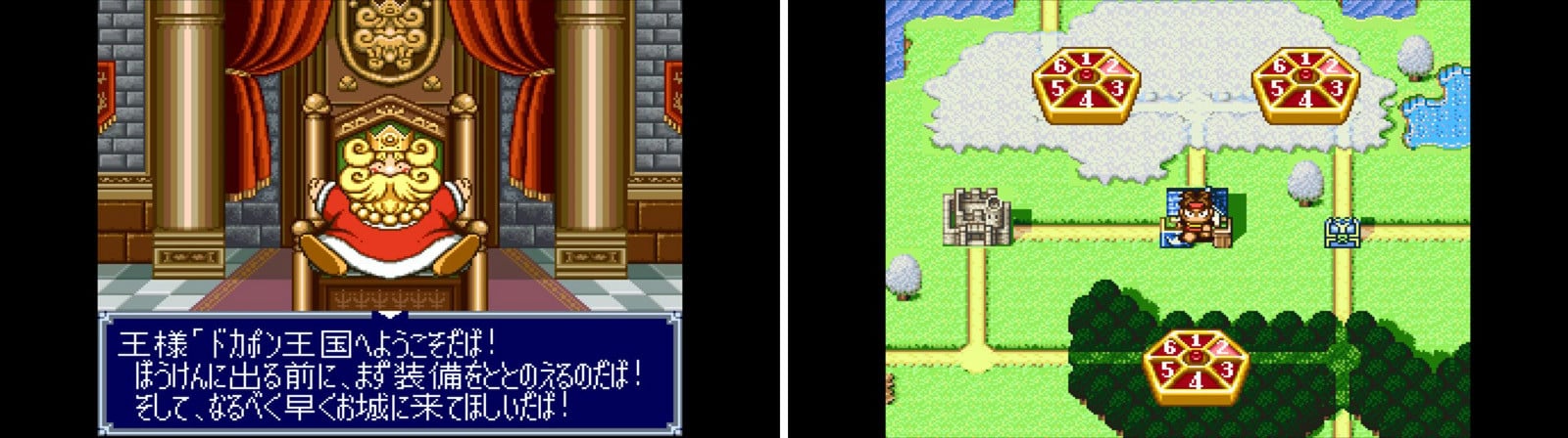 『ドカポン王国Ⅳ~伝説の勇者たち~』は、シリーズの原点となる作品だ(「Ⅳ」は4人対戦対応を強調したものとされる)。ドカポン王国にモンスター軍団が出現し、4人の勇者が召集されるも、モンスター退治で協力するどころか逆に争うことに。プレイヤーはルーレットを回し、止まったマスでイベントやモンスター討伐、勇者同士での対決などをしてお金を稼ぎ、勇者間での資産を競い合う。