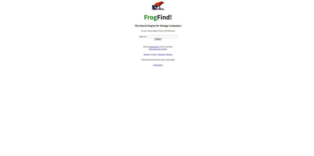 またこのほか、インターネット黎明期の代表的な接続方法だったというAOL(America Online)のダイヤルアップインターネットサービスが今年9月にサービス終了したこととの関連を指摘する意見もある(The Verge)。いずれにせよ、今回のGoogle検索のサポート終了は、むしろ最近まで旧式ハード用のブラウザでGoogleが利用可能であったという点に意外性のある報告かもしれない。なお、「FrogFind」のようなレトロハード向け軽量検索サービスを活用することで、ドリームキャストからでも引き続きウェブ検索を楽しむ方法は残されている。
