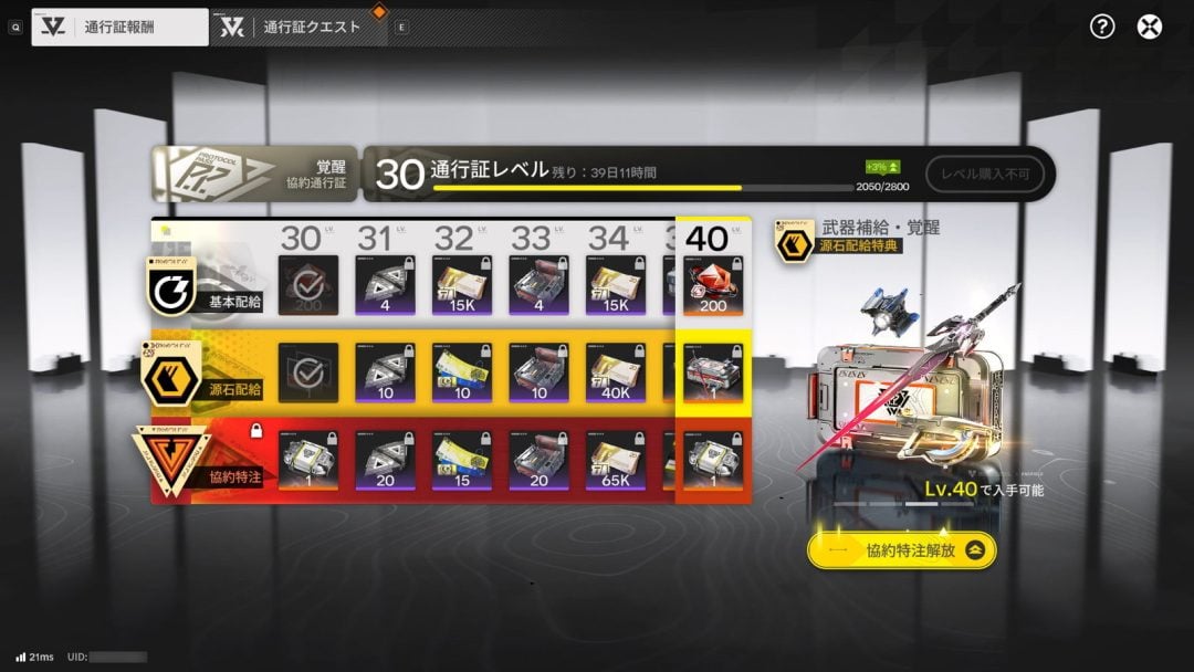 通行証経験を溜めると、通行証の報酬がひとつずつアンロックされていく仕組みになっている。継続的にゲームをプレイすることで一定の報酬が獲得できるわけだ。いっぽうで、何らかの事情でプレイできなかった場合、通行証の有効期間内に十分な通行証経験を溜めることができず、一部の報酬を受け取れないといった事態も発生する。新たな通行証の期間が始まるまでのモチベーション低下につながってしまうのだ。