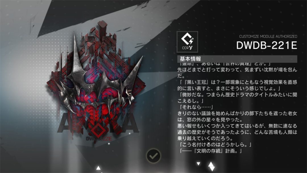 これらの能力は「文明の存続」が過去の文明の遺産を記録し、文明が滅びたときに備えるための記録媒体としての側面を持っているためのものである。この黒い王冠を「文明の存続」と呼ぶ人間は『アークナイツ』の登場人物でごく一部のはずである。なぜアルダシルは『アークナイツ』の中核になっているこの話に触れたのかもたいへん気になるところだ。