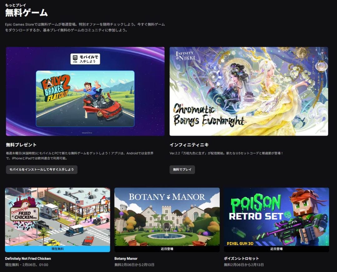 なお、これまで通りEpic Gamesが主導する週替わりキャンペーンとして、現在はPC向けに『Definitely Not Fried Chicken』、モバイル向けに『Faily Brakes 2』が無料配布中だ。いずれも2月6日午前1時までの配布となっているため、興味のある方は早めにライブラリに追加しておくといいだろう。