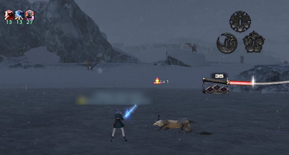 Lv.1の無が出現するのはクルザス西部高地だ。雪深く寒い地域に、アンテロープのような外見の無が群れているらしい。筆者もいそいそとクルザス西部高地へと赴いて、Lv.1の無を観察してきた。SNSで話題になっていたためか、クルザス西部高地には無を一目見ようとやってきたらしきプレイヤーも散見された。POP地点を示す全体チャットを流してくれるプレイヤーもおり、Lv.1の無を取り巻く優しさを実感した。筆者が見物に行ったのは座標にして[19,10]のあたりだが、[32,32]のあたりにもLv.1の無は生息しているようだった。