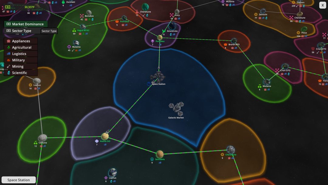 そうして生産したロボットは、宇宙ステーションまで輸送して他の星に販売することが可能。本作では自分の星のほか、銀河のマップがランダム生成され、それぞれの星に異なる需要が設定される。近隣の星の需要に応えて製品を作り、市場シェアを増やして利益率を高めていくのだ。十分に手元の資金があれば、資源を他星から輸入することも可能となる。またゲーム開始時点の主人公は多額の借金を背負っており、完済するのもゲームの目標の一つだ。