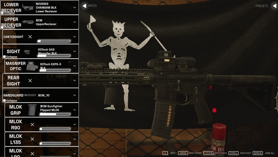 そして本作は武器カスタマイズの自由度の高さも持ち味となっている。トリガー、グリップ、ストック、バレルなど、それぞれに膨大な量のアタッチメントが用意されており、マウント規格が一致すれば自由に装着可能。そのため、スコープの上にさらにスコープを重ねるといった実用性のない構成も実現できる。くわえて、アタッチメントの位置やスコープを覗く位置なども細かく調整できるなど、実銃さながらの柔軟なカスタマイズも魅力となってている。