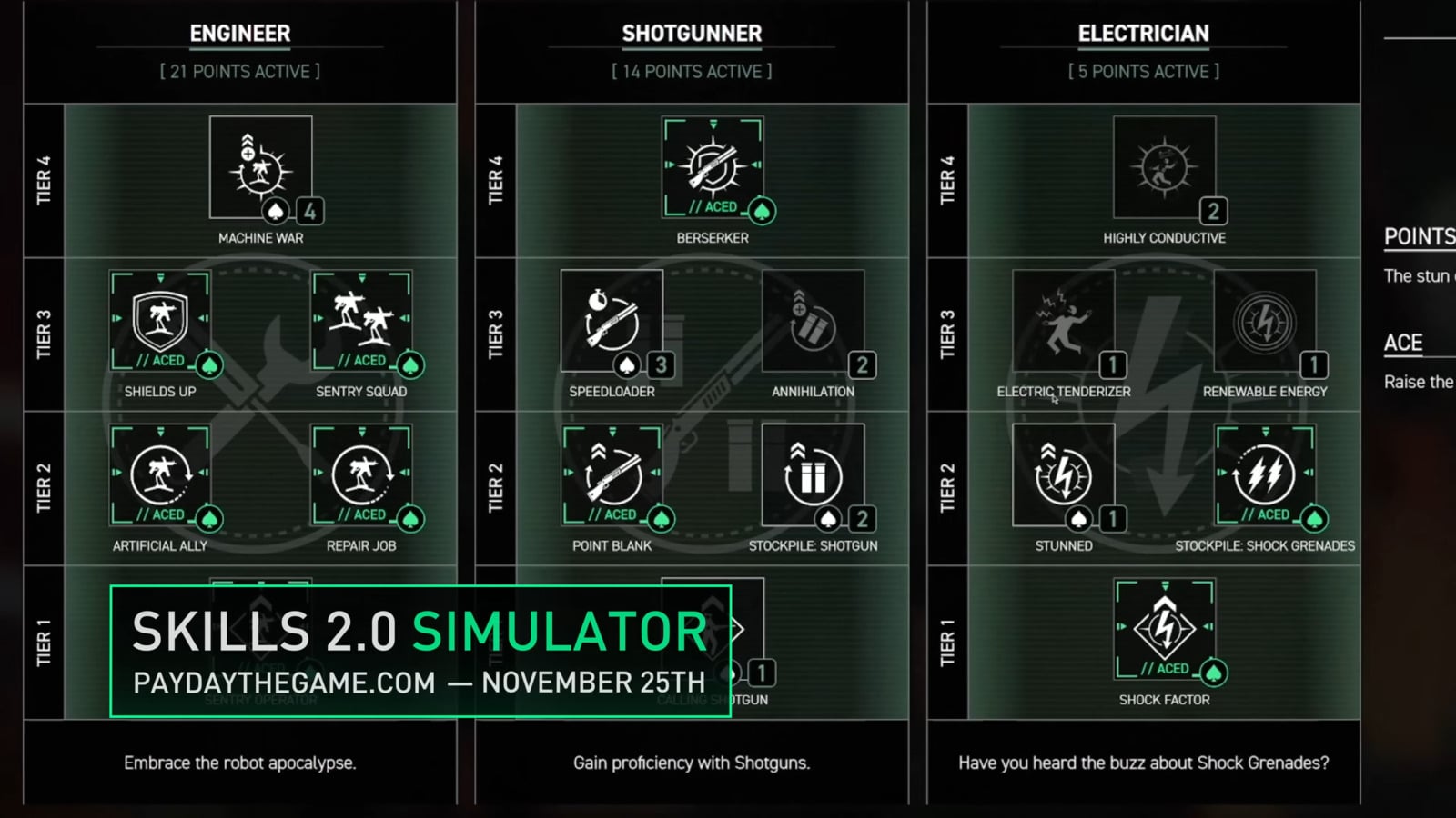 また本アップデートに合わせて、Starbreeze Studiosは新たに「Skills 2.0 Simulator」という専用ウェブページを公開。プレイヤーはゲーム外で自由にスキルビルドを試行錯誤したり、作成したビルドを他プレイヤーと共有したりできるようになっている。