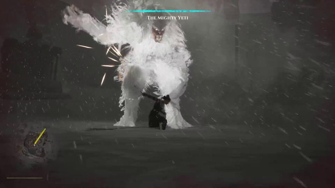「Story Mode」では実装済みの複数のシーンをプレイでき、一つ一つのシーンでミッションこなして順次アンロックしていく形式だ。ただし、現行バージョンではシーン間はぶつ切りとなっており、シーンの移り変わると突然マップ上のまったく違う場所に移されることになる。それぞれのシーンでは、たとえば誰かをバイクに乗せて特定の地点まで送り迎えするミッションや、人を貪り食う凶暴なイエティとのバトルなどが展開されていく。バトルは武器の切り替えや、ローリングによる回避、攻撃と同じボタンを敵の攻撃モーションに合わせて押すことによるパリィなどができる、かなりアクロバティックなシステムとなっている。