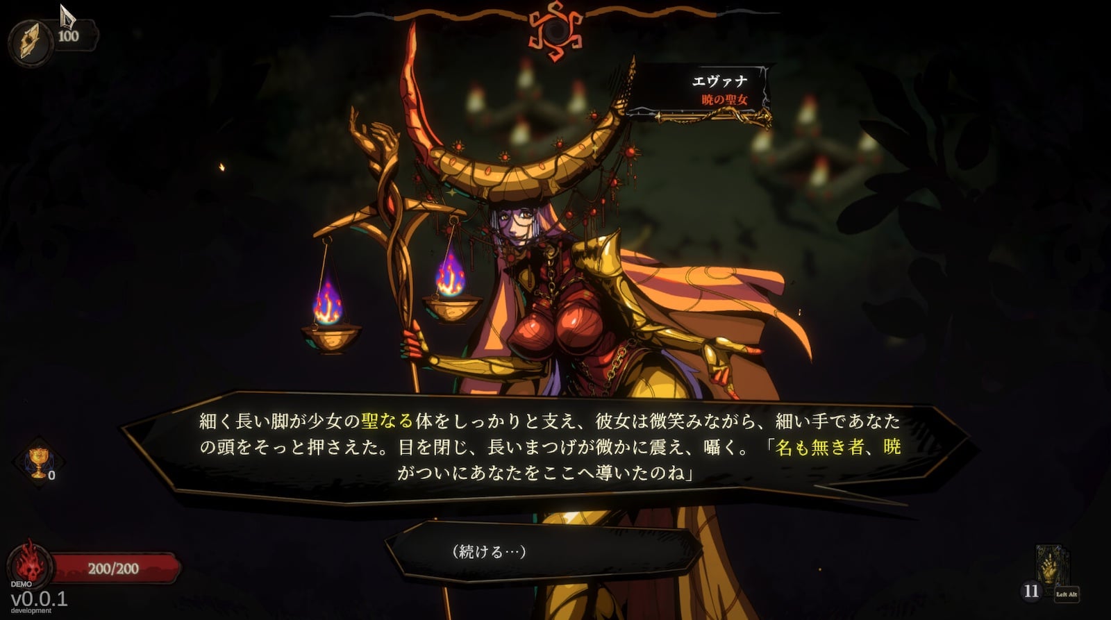 今回配信された体験版は、すでに日本語表示に対応。聖杯騎士というクラスのキャラクターにて、霧の森というステージをプレイでき、序盤にはチュートリアルも用意されている。またキャラクター選択時には、装備とレリックの一部カスタマイズも可能。装備によって特定のカードが初期デッキに採用され、レリックにはさまざまなバフ効果がある。