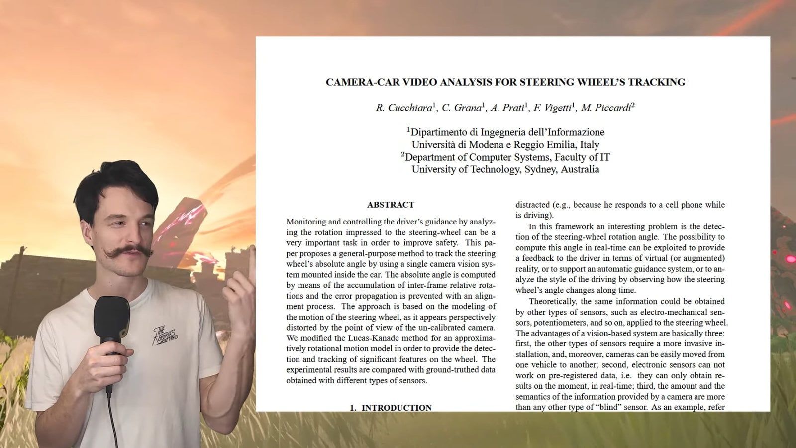 解決策に行き詰まる中、Carl氏は一本の論文を発見。それは「Camera-car Video Analysis for Steering Wheel’s Tracking(ハンドルトラッキングのための車載カメラ映像分析)」という、まさに同氏がやりたいことを表したぴったりのタイトルであった。そこで説明された手法によれば、まずカメラの映像に対して「ハフ変換」を用いてハンドルの中心と半径を検出する。次に「Shi-Tomasi法」と呼ばれるアルゴリズムを使ってハンドルの特徴点を分析。そこに「Lucas-Kanade法」を用いることでオプティカルフロー、すなわちフレーム間での移動量を計算する。これにより算出された角度を足し合わせていくことで、ハンドルがどれだけ回転しているかを検出可能という仕組みだ。Carl氏は試行錯誤の末、ついにハンドルの回転をコントローラーの入力へと変換できるようになった。