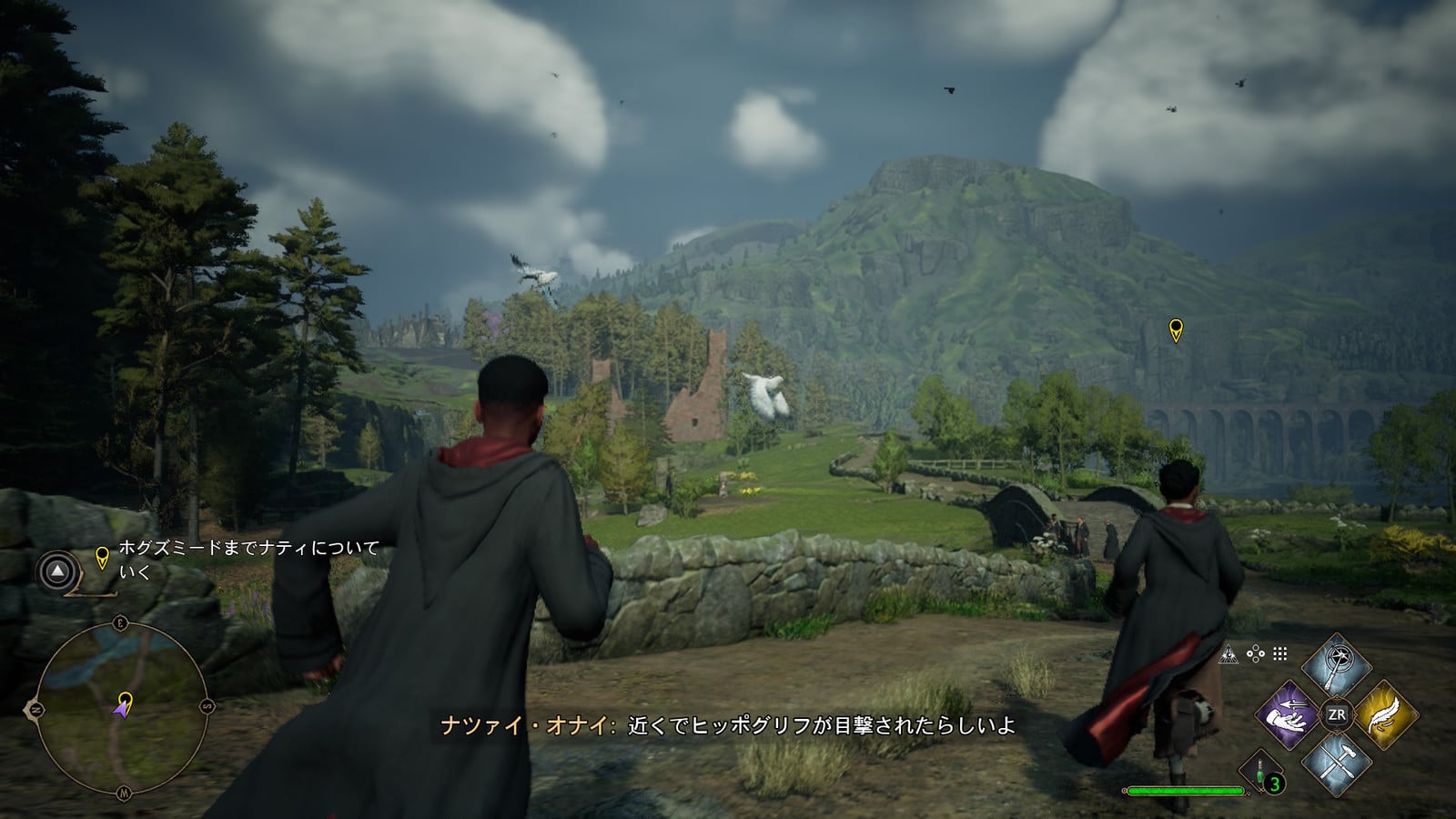 例として、筆者は普段Joy-Con 2の側面を下にしたマウス操作をメインにゲームを進めていたが、箒での飛行の際にはジャイロ機能での直感的な操作が楽しく、自然と操作を切り替えるようになっていた。ジャイロでの飛行のコツとしては、左右に曲がりたいときはJoy-Con 2の向きを変えるのではなく、Joy-Con 2を正面に向けたまま曲がりたい方向にひねること。慣れてくればボタン操作を一切しないままに飛行ができるようになり、なかなか爽快だ。