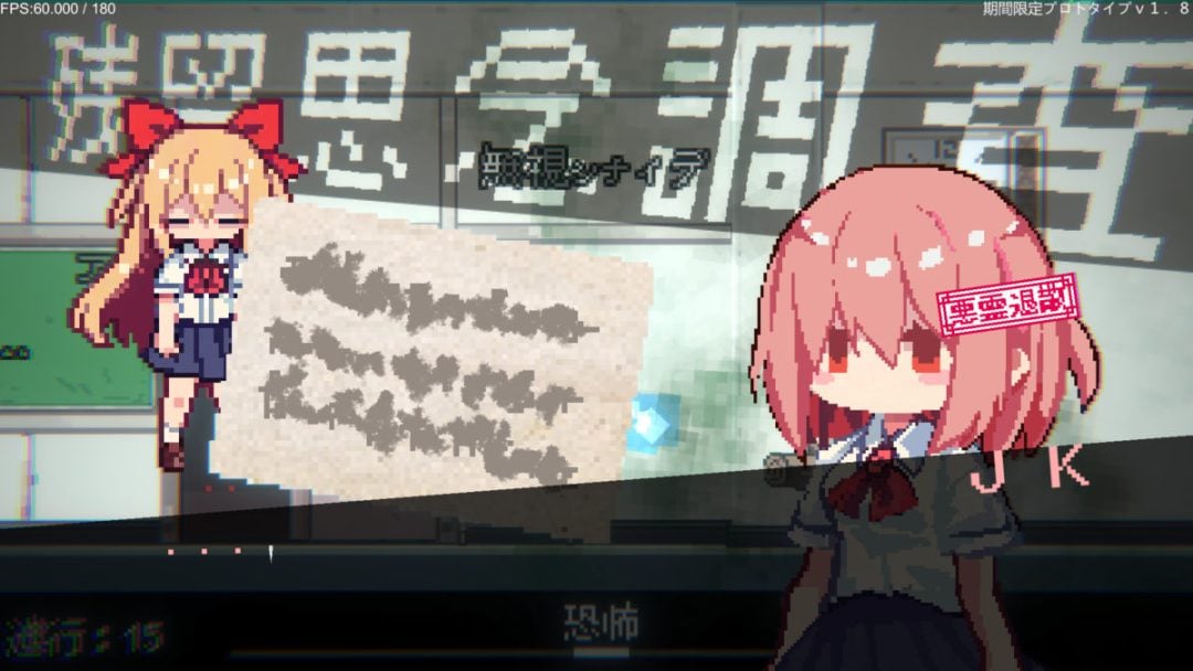 本作でプレイヤーは主人公のJKを操作して、怪異と戦いながら夜の学校を一方向へ進んでいく。夜の学校には、ネガティブな言葉や黒い影の怪異、ちょっとしたトラップといった脅威が存在している。主人公のJKは2段ジャンプやしゃがみ、目の前の物体を調べるインタラクションなどが可能。さらに主人公は丸太などの武器を手に入れると、飛び交うネガティブワードや怪異といった一部の脅威を攻撃できる。本作では主人公のJKが、時に怪異に物理で立ち向かいながら、まっすぐ夜の学校を探索していくのだ。主人公には恐怖値が存在し、探索していくと恐怖値が徐々に上昇していく。ゲームプレイ上では、恐怖値を低く保つことも重要であるようだ。