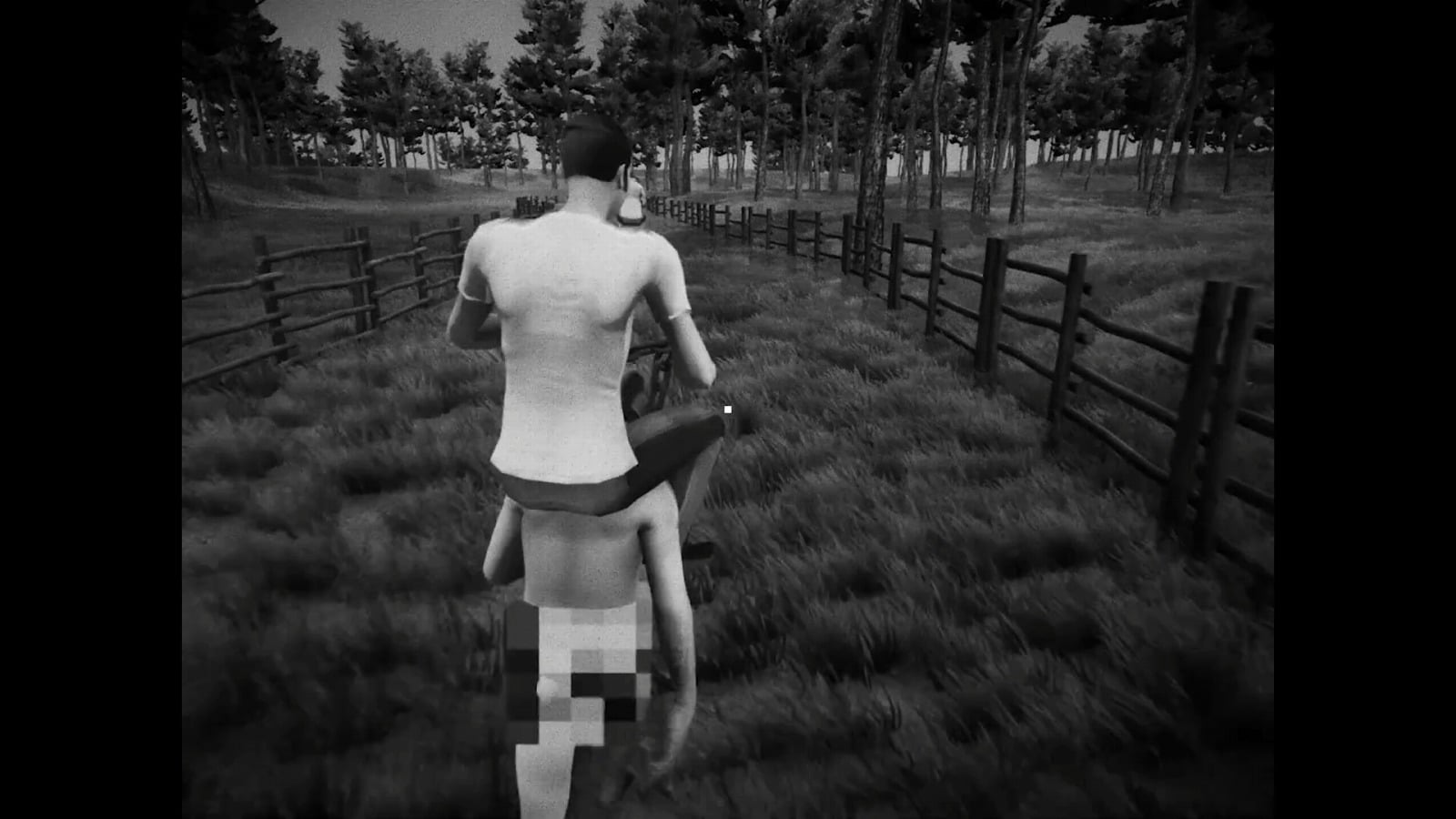 『HORSES』は牧場を舞台にした一人称視点のアドベンチャーホラーゲームだ。牧場では動物の代わりに、馬のフェイスマスクを被った全裸の男女を飼育しており、プレイヤーはそこで14日間の異常な仕事を体験する。プレイ画面はすべてモノクロで描かれており、時折挿入される実写映像も本作の特徴だ。