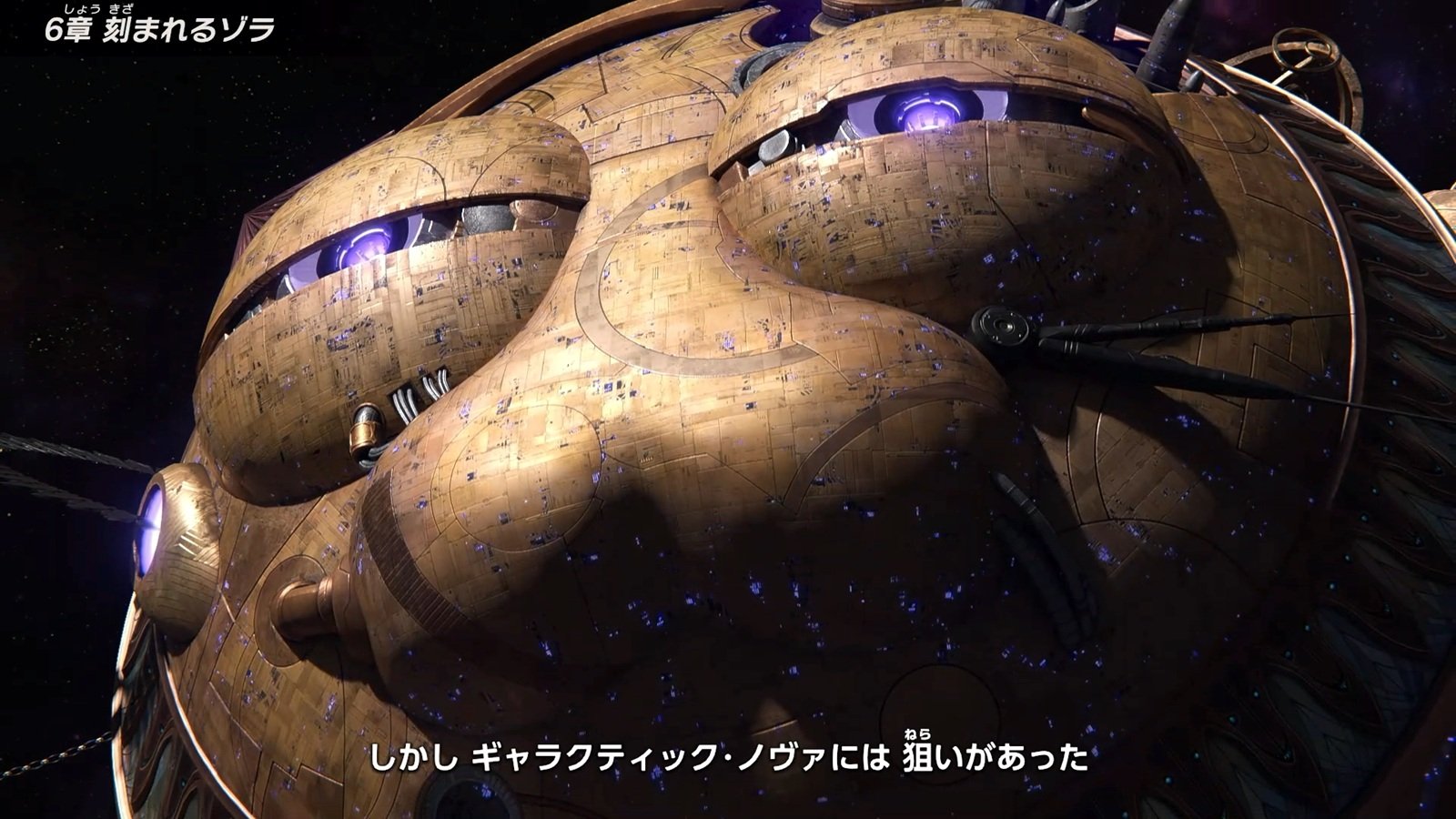 ところがノヴァはそれだけにとどまらず、ポップスターに作業用マシンを投下。ゾラを解体し「ギガンテス」へ改造。ポップスター上の全生命の抹殺を目論む。ここで本性が明かされる際に挿入されるムービーと字幕が、まさに「しかしギャラクティック・ノヴァには狙いがあった」である。