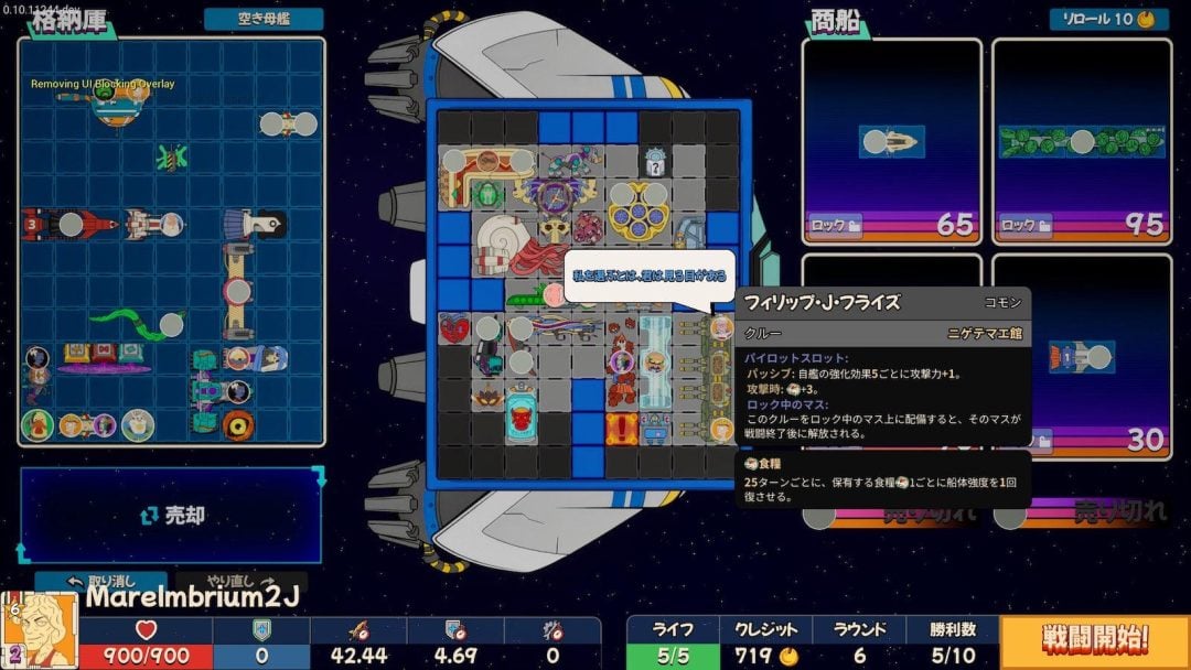 商船では宇宙船のクルーを雇うこともでき、貨物スペースに配置することで固有の効果が発揮。さらに、貨物スペースを拡張できる能力も持っており、ロックされたマスにクルーを配置してバトルをこなすと、そのマスと隣接するマスがアンロックされる。よりたくさんのアイテムを配置できるようになる仕組みだ。