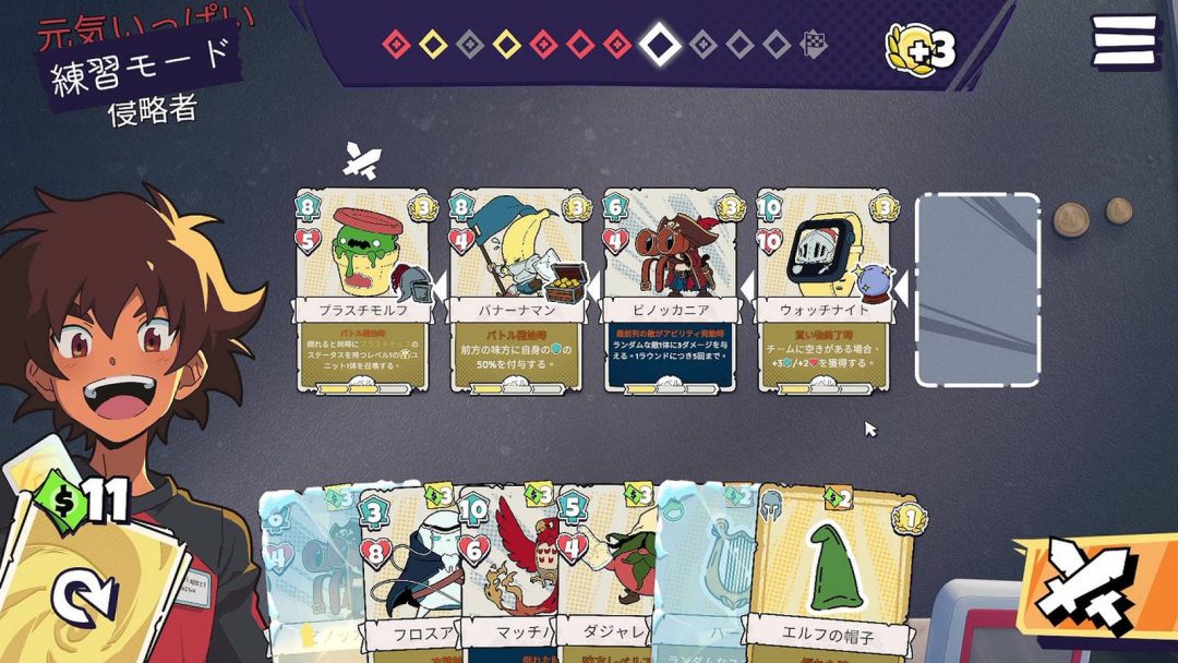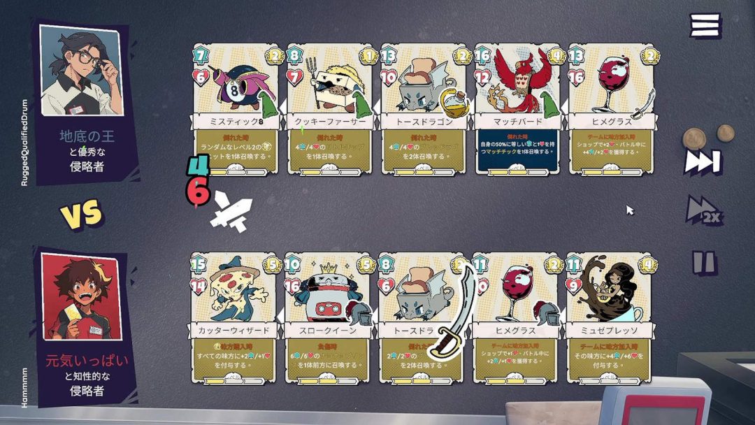 ヒーローとクランを選択するとゲームが始まり、買い物フェイズとバトルフェイズが交互に展開される。買い物フェイズでは、毎フェイズごとに配られるゴールドを使用し、ユニットや装備品といったカードを購入。ユニットカードは最大5枚まで自陣に配置でき、装備品カードを装備したり、消耗品カードで強化したりできる。配置したユニットは一番左から順に行動するが、中には味方が攻撃した際に効果を発動するユニットも存在するため、配置順も勝敗の鍵を握る重要な要素となる。