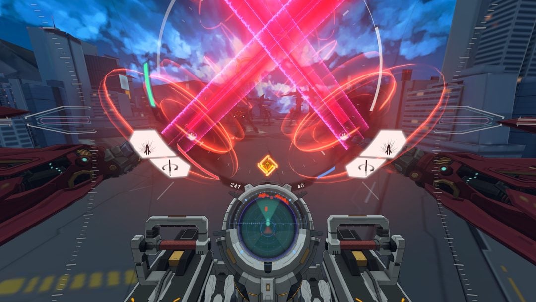 今回配信された体験版は、こうしたゲームプレイを一通り試せる内容となっており、チュートリアルも用意されている。また、VR版の没入感を再構築したカメラワークや演出、そして非VRのPC版として最適化された操作性などを確かめることができる。開発者によると、VR版で培ってきた“巨大ロボを動かしている手応え”を、より多くのプレイヤーに体験してもらうため、操作性・演出・テンポを徹底的に作り直したそうだ。