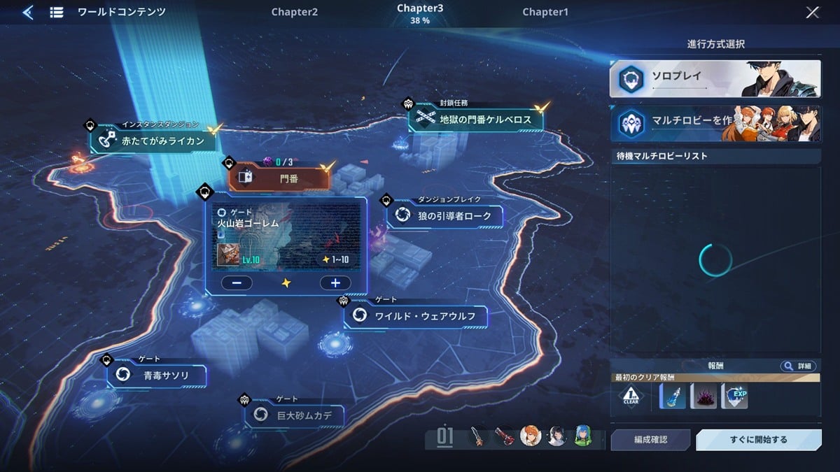 ハンター協会では、前述した施設が利用できるほか、ワールドマップからメインストーリーの進行と、ワールドコンテンツへの挑戦ができる。ワールドコンテンツはいわゆるフリークエストで、さまざまな素材や通貨、装備品の入手先となる。経験値のほか、キャラクターのスキル強化に必要となる素材もワールドコンテンツから入手できるので、強くなりたければワールドコンテンツにどんどん挑戦していこう。